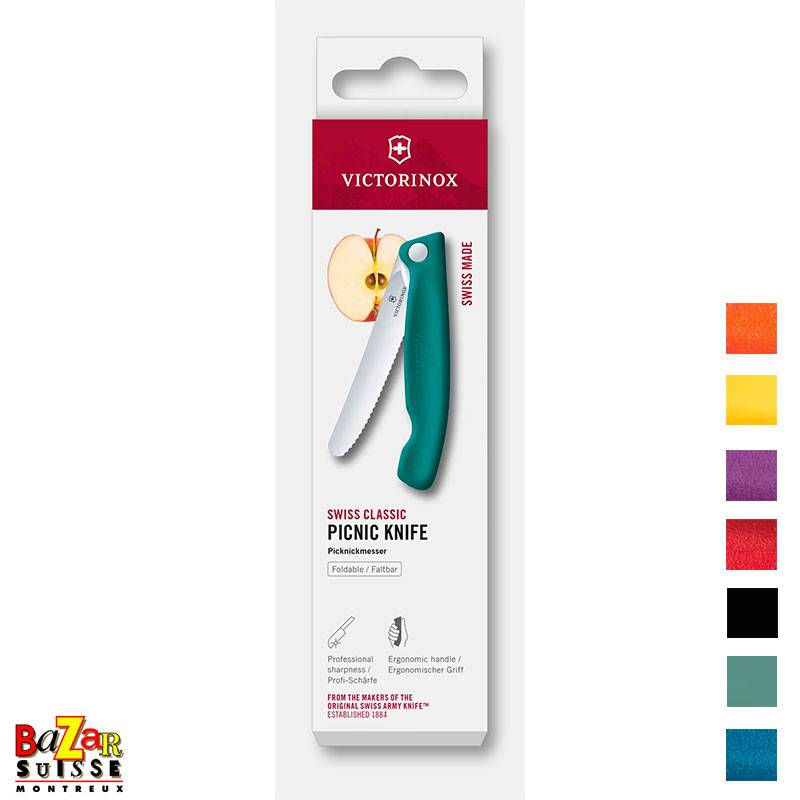 Ce couteau de pique-nique présente une lame professionnelle pliante au tranchant denté, qui se replie en toute sécurité dans le manche pour un rangement facile. Son manche ergonomique et léger assure une prise en main confortable et une excellente maîtrise. Fabriqué en Suisse et résistant au lave-vaisselle, ce couteau pratique et facile à emporter offre des performances longue durée.